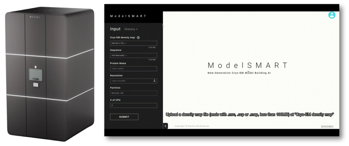 水木未来新一代AI+冷冻透射电子显微镜(左);SMART软件界面展示(右)